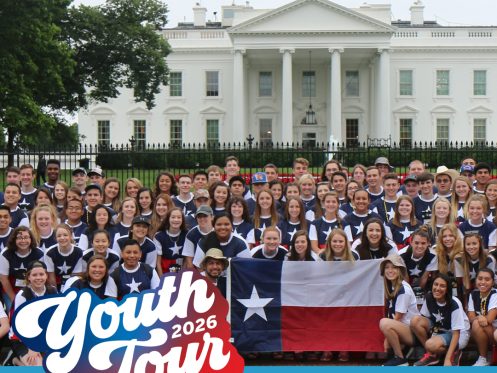 Since 1965, Texas electric cooperatives have joined together to send students from across our state to our nation’s capital. Youth Tour began as a way to educate young people about government and civic engagement, and it has grown into what many describe as “the trip of a lifetime.”